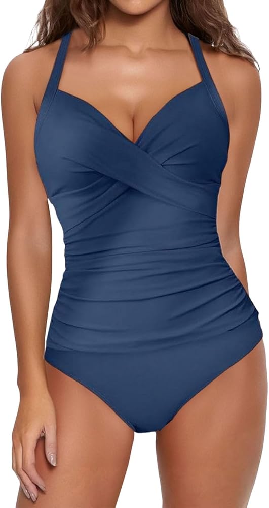 Costumi Da Bagno Interi Per Le Donne Taglie Forti Controllo Della Pancia Copertura Completa Increspato Modesto Costumi Da Bagno Push Up Collo Quadrato Costumi Da Bagno, Blu, S