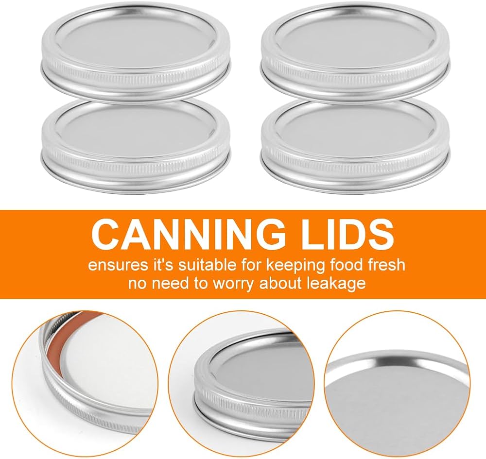 Mason Jar, 10 tappi per conserve, tappi per alimenti, a prova di perdite, riutilizzabili, in metallo, per barattoli di marmellata (86 mm) ; Quantità Tipi: ci sono 10 pezzi x anello circolare + 10 pezzi x coperchi per conserve. Pratico utilizzo: il bordo esterno dell'anello di copertura è filettato per aumentare l'attrito e aprire più facilmente il barattolo in vetro. Jar Topper Coperchi Barattoli Per Conservazione Degli Alimenti A Prova Di Perdite Mason Jar Applicabile per: adatto per sigillare barattoli per conserve, in cui si possono conservare spezie, caramelle, biscotti, frutta, marmellate, bevande analcoliche, tè o caffè, chiodi, viti e altri piccoli oggetti. La chiusura a tenuta stagna assicura che il cibo rimanga fresco e non devi preoccuparti di perdite.