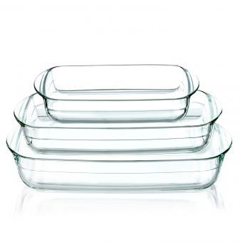 Set Di 4 Pirofile In Vetro Con Coperchio 1+1.7+2.8+4.2L- Teglia Per