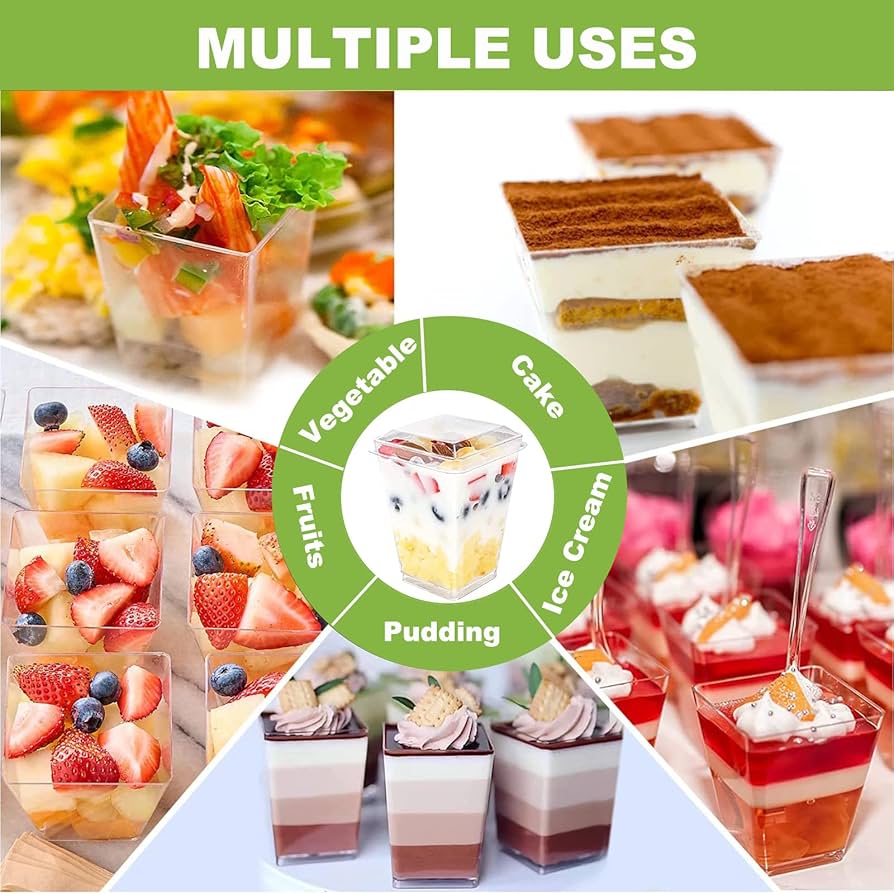 Contenitori Plastica Con Coperchio ABSOK 50 Pezzi Tazze Da Dessert In Plastica Con Cucchiai, 140 Ml Contenitori Riutilizzabili Quadrati Trasparenti Per Budini, Mousse, Gelati, Compleanni, Matrimoni Bicchieri Plastica