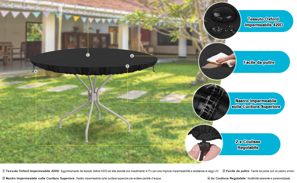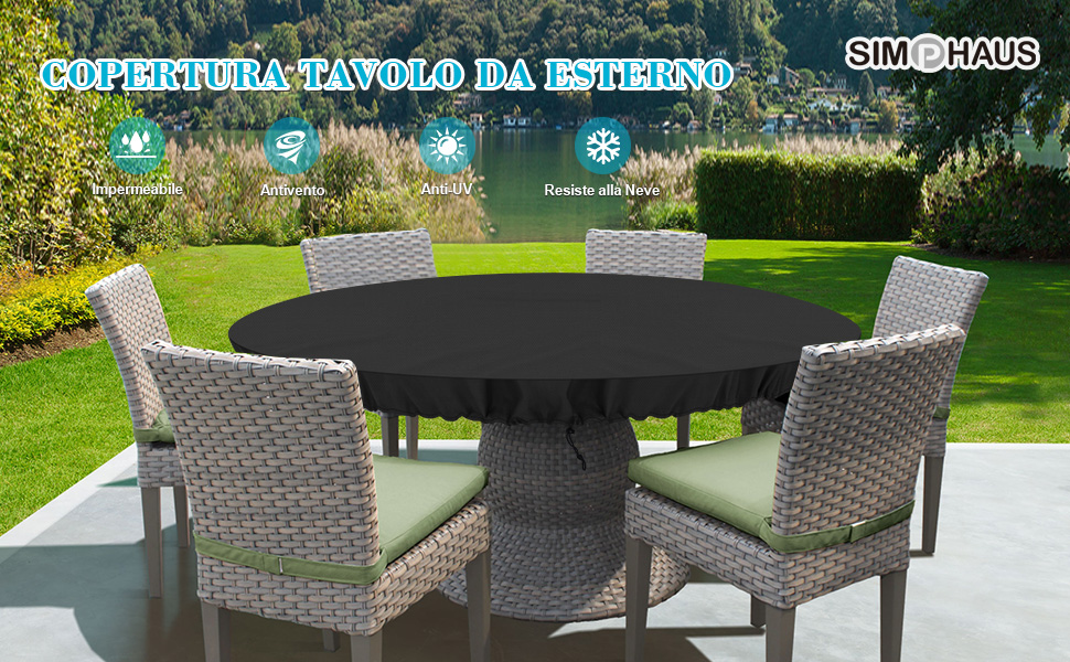 Il copertura avrà un bell'aspetto e proteggerà i mobili per tutte le stagioni. Prodotto con cuciture a doppio filo per una maggiore resistenza allo strappo. L'interno ha un rivestimento in PU che blocca efficacemente il 100% dei raggi UV. Le coperture per mobili da giardino proteggono i tuoi mobili dagli elementi aspri della natura 【Adatto per la maggior parte dei mobili】Copertura Tavolo Coperture dimensioni disponibili(DxH). 【Tessuto Oxford Resistente】La copertura per mobili da giardino è realizzata in tessuto oxford 420D di alta qualità e resistente. Prodotto con cuciture a doppio filo per una maggiore resistenza allo strappo. 【Risparmiare Preoccupazioni E Sforzi】È molto facile da lavare, basta sciacquare la fodera con un tubo flessibile e asciugarla al sole. Questo copertura viene fornito con una borsa da trasporto extra per riporla comodamente quando non viene utilizzato e per un facile trasporto. 【Protezione Perfetta】Ti suggeriamo di mettere qualcosa al centro del tavolo per sollevare il coperchio per dargli altezza se la pioggia scorre via. Questo può prevenire la muffa e far circolare il flusso d'aria, migliorando la durata delle coperture. Adatto anche per tutti i tipi di mobili da esterno, sedie, tavolini da caffè, ecc. Copertura Sedie Esterno HGPFCB Coperture Per Mobili Da Giardino Rotonde Copertura Per Copertura Rotonda Per Mobili Da Giardino Si prega di misurare attentamente le dimensioni del set di mobili prima dell'acquisto. La copertura circolare per tavolo da giardino è adatta per tavolo da giardino rotondo con 4-6 posti.