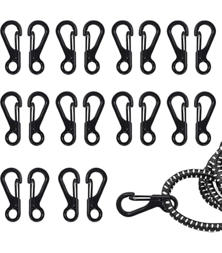Il tutto è robusto e durevole e puoi usarlo con sicurezza. AMPIE APPLICAZIONI: i ganci per corde elastiche in plastica sono adatti per una varietà di usi. Corda Elastica Cordino Con Moschettone, Portachiavi Paracord | Moschettone Portatile Con Cordino In Paracord | Corde Elastiche Leggere Per Moschettoni, Corde Elastiche Resistenti Con Gancio Per Chiavi, Torce Elettri Corde Elastiche Con Gancio Tipo di prodotto:Moschettone nero. Materiale:Plastica Colore:Nero Quantà:10 pz/pacco. Dimensioni:51mm x 18mm (lunghezza x larghezza ✔ Colore brillante perfetto per tracolle per borse, tracolle per fotocamera, tracolle, portafogli e altro, strumento perfetto per te. Facile da installare: il gancio in plastica è molto facile da installare, facile da montare e può essere installato senza altri strumenti, offrendo comodità alla tua vita di viaggio. Processo speciale: realizzato con uno speciale processo di galvanica, la superficie complessiva è liscia e piatta, puoi usarla come decorazione per borsetta, semplice ed elegante. ✔ Adatto a kayak, imbarcazioni da diporto, canoe, barche oceaniche, pesca, barche a piattaforma, ecc. DIMENSIONE PERFETTA: il gancio in plastica ha un diametro interno di 8 mm e una lunghezza di 47 mm. Puoi regolare la lunghezza della corda liberamente e rapidamente. Specifiche materiale: plastica Peso: 15 kg Diametro interno: 8 mm Lunghezza: 47 mm Colore: nero Quantità: 10Caratteristiche ✔Facile da installare, non sono necessari altri strumenti, risparmiando tempo e fatica. Alta qualità: il gancio a molla del gancio per fune è realizzato in plastica di alta qualità, resistente alla ruggine e alla corrosione e ha una forte resistenza agli urti. ✔Perfetto per cordini fai-da-te, braccialetti, fibbie, piccole borse, creazione di borse e altro ancora. ✔ Design rotante, forte flessibilità, moschettone classico e porta con chiusura a molla, più sicuro.