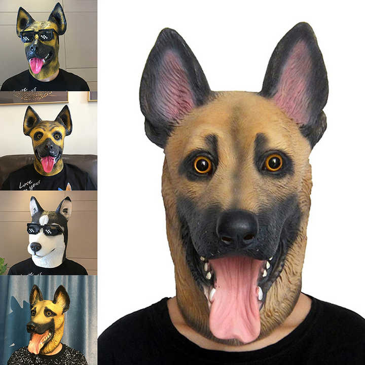 Cosplay Funny Animal Sheepdog Maschere Per Cani Pastore Tedesco Maschera Integrale Halloween Animale Realistico Copricapo In Lattice A Testa Piena - AliExpress