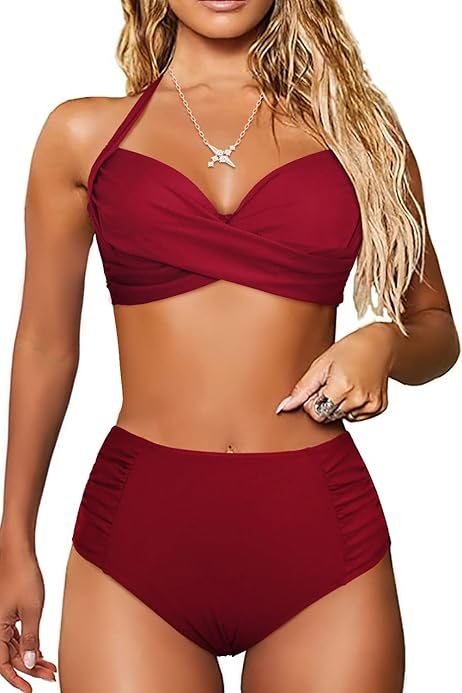 Costume Da Bagno Donna 2 Pezzi A Vita Alta Ruched Bikini Classico Push