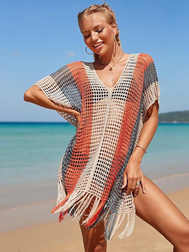 Avejjbaey Copertura Per Costume Da Bagno Iridescente Da Spiaggia All Uncinetto Lavorata A Maglia 148174394