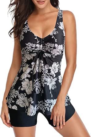 Costume Tankini Mare Donna Due Pezzi Push Up Costumi Top Con Vita Alta Pantaloncini Da Bagno Bikini Set Taglie Forti Costume Tankini Da Donna