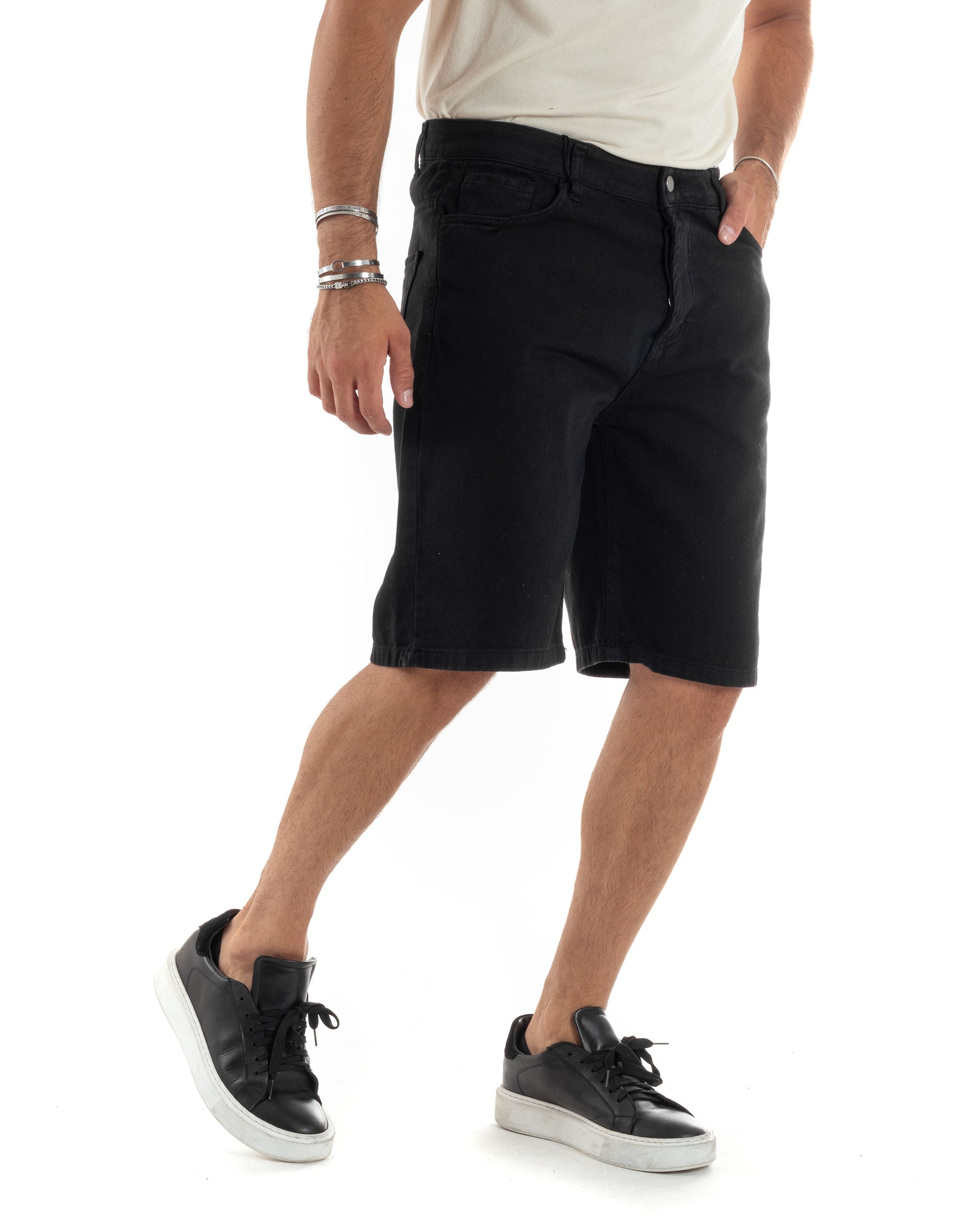 Bermuda Uomo Cotone Tasconi Pantaloni Corti - NERO