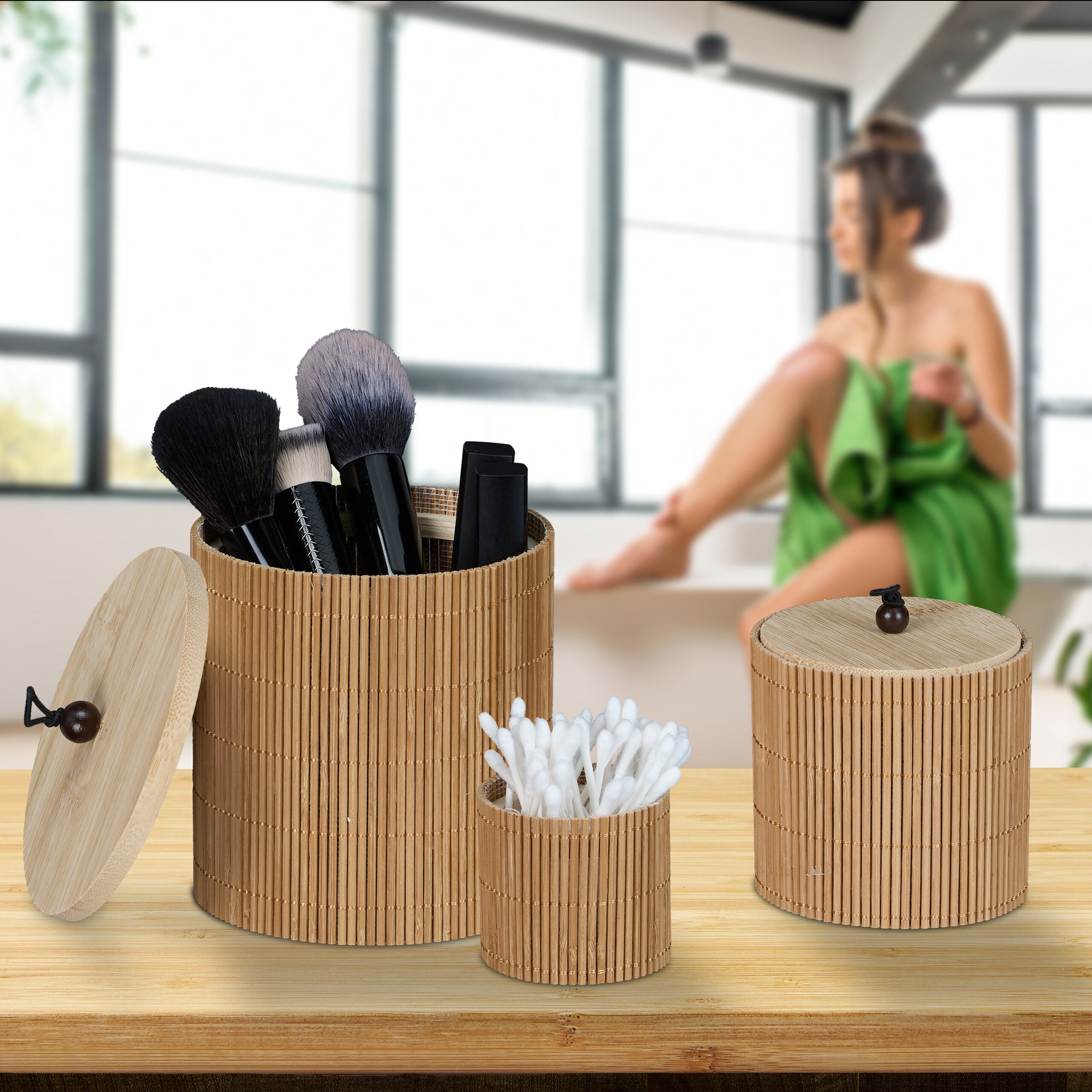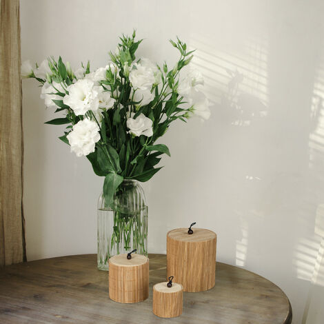 Relaxdays Scatole Portaoggetti, Set 3 Contenitori Porta Cotton Fioc, Pennelli Trucco, Dischetti Cotone, Bambù, Naturale | Leroy Merlin