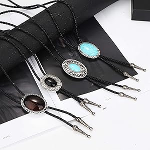 Cravatta uomo, Cravatta donna, Cravatta di cuoio nera per uomo e donna, Cravatte Bolo per Uomo Donna, Cravatta nera, bolo tie, stile Cowboy Western Native American (B REGALO IDEALE: La nostra bolo tie in pelle è un regalo perfetto e popolare per gli amanti della cravatta occidentale e per chiunque ami la moda, che apprezzerà il suo design unico AMPIO UTILIZZO: Le bolo tie sono sicuramente la tua prima scelta quando partecipi a compleanni, lauree, festival, Natale, anniversari, feste o qualsiasi altra occasione Cravatta Cowboy Cravatta Uomo Cravatta Donna Cravatta Fatta A Mano Cravatta Nativi Americani Accessorio di moda: cravatta donna, cravatta uomo, questo prodotto è perfetto come elegante collana in pelle che può essere indossata con disinvoltura. Misura regolabile: lunghezza del cavo in denim 103 cm, diametro del pendente 3,3 cm, puoi farlo scorrere per regolare la lunghezza della bolo tie