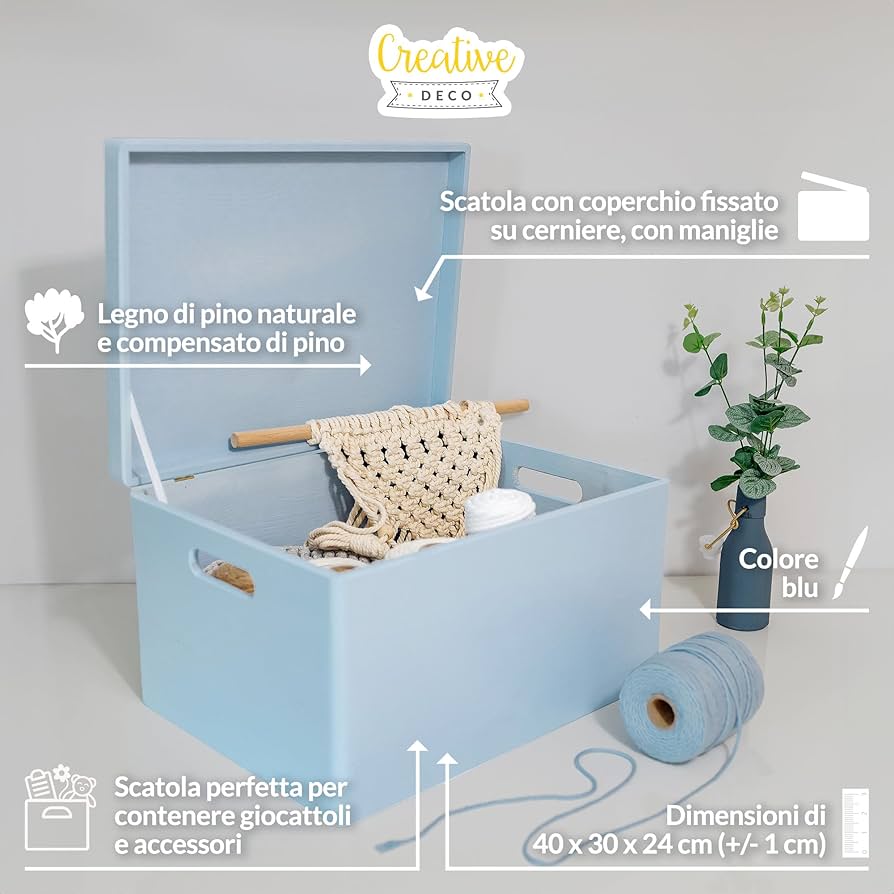 Creative Deco XXL Blu Grande Scatola Di Legno Giocattolo Scatola Di Stoccaggio | 40 X 30 X 24 Cm (+/- 1) | Con Coperchio Per Decorare | Senza Maniglie | Perfetto Per Decorare, Regalo