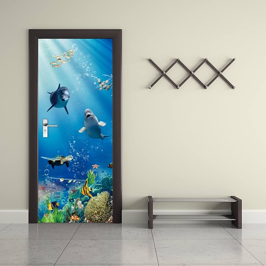 Adesivi Per Porte Interne 3D Delfino Moderno Creativo Parete Soggiorno Sala Da Pranzo Carta Da Parati Romantico Complementi Arredo Casa Pasta PVC Impermeabile L95 X A215cm : Amazon.it: Casa E Cucina