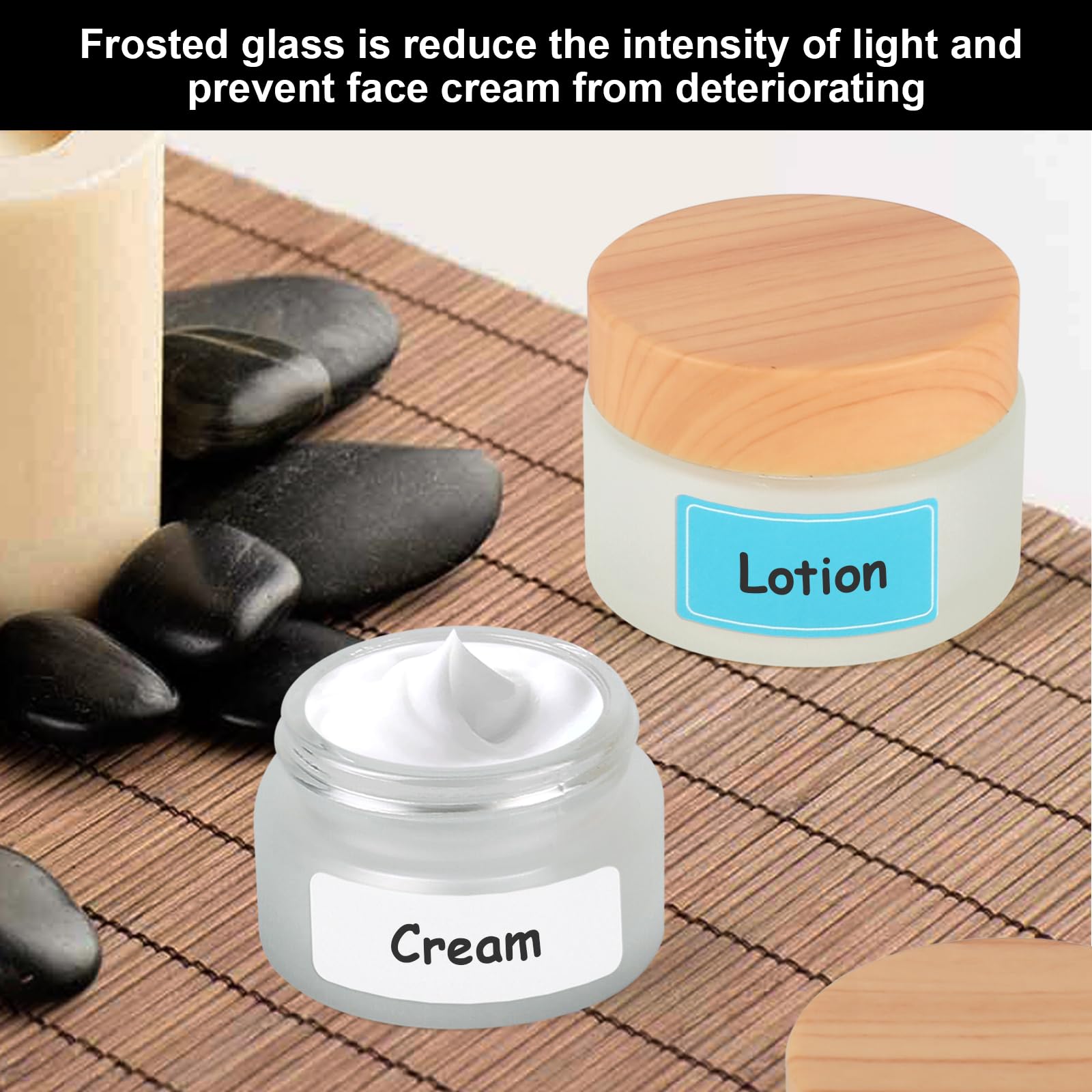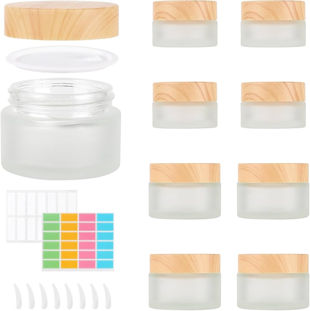 Il fondo del flacone della crema viso è filettato per evitare lo scivolamento. 【Adatto ai Viaggi】La capacità di vasetti per cosmetici è 20 ml e 30 ml rispettivamente, di piccole dimensioni, di peso leggero e facile da trasportare. Non solo sono robusti e sicuri, ma anche non to Barattolo Vetro 8 Pezzi Barattolo Cosmetico Di Vetro , Contenitore In Vetro Barattoli 10 Ml/20 Ml/30 Ml/50 Ml, Barattoli Cosmetici Per Creme Cosmetici , Lozioni, Oli Essenziali Vaselina Bianca ?[IMBALLAGGIO 【Materiale di Vetro】Contenitori cosmetici vuoti è fatta di vetro spesso, che è durevole, difficile da rompere, facile da pulire e riutilizzabile. Il vetro smerigliato può ridurre l'intensità della luce. 【Ampio Uso】Contenitori creme vuoti adatto per riporre cosmetici, come ombretto, crema viso, cosmetici, rossetto, lozione. È molto adatto per mettere in borse cosmetiche, borse e zaini, che è conveniente per viaggiare. Caratteristiche 1. Vasetti vetro per creme design del vetro smerigliato e della copertura del grano di legno è elegante e bello. Il vetro smerigliato può ridurre l'intensità della luce e proteggere il liquido nella bottiglia di crema viso dai raggi ultravioletti. 3. Contenitori cosmetici vuoti piccolo e facile da trasportare. La copertura e il rivestimento del grano di legno possono impedire la perdita di liquido o crema viso. 2. Vetro smerigliato barattolo cosmetici vuoti fatto di vetro, durevole e non facile da rompere. Vasetti Vetro Piccoli YAXIDAEVER 6Pcs Vasetti Vuoti Per Cree,Vetro Serigliato Riutilizzabile Vuoto Cree Vasetti Contenitori Creme Da Viaggio