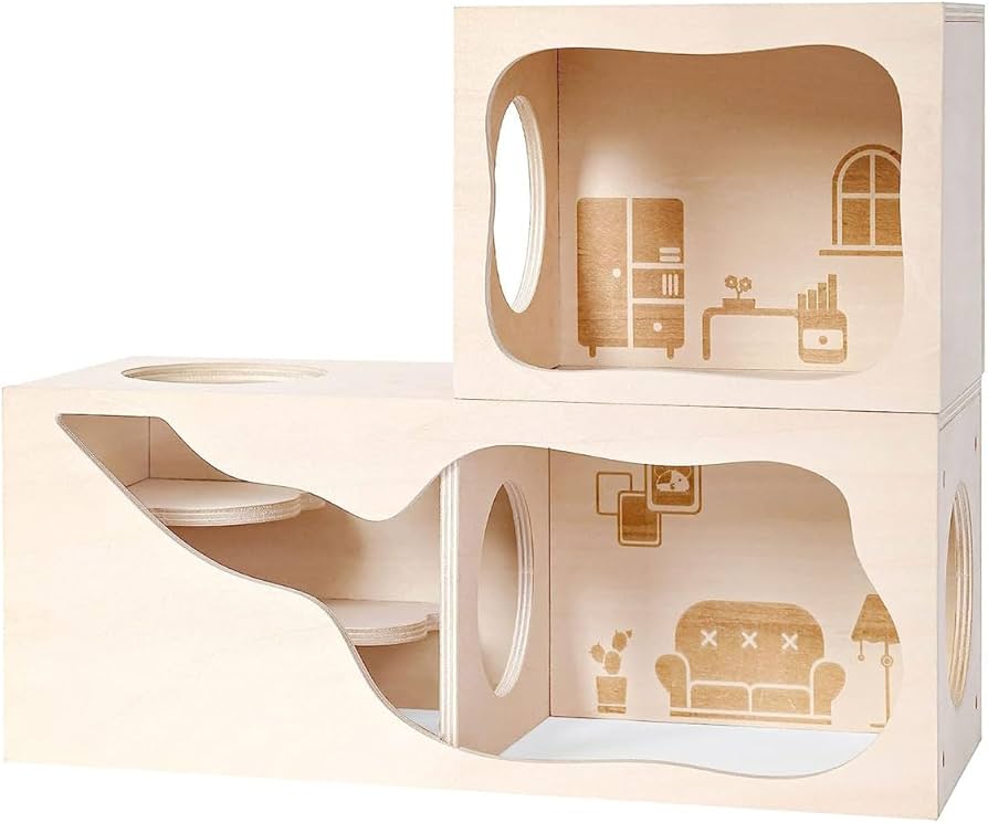 Casa per criceti in legno , nascondiglio per criceti multicamera, Nascondigli e tunnel multi -camera quadrati a 2 camere , Giocattoli per tunnel per piccoli animali, nascondiglio per criceti da Hideout To Play: Het interieur van het hamsterhuis is ontworpen met meerdere kanalen om te simuleren als een doolhof en tunnel met een klimladder om hamsteractiviteit te bevorderen en entertainment te bieden om hun verveling en negatieve emoties te verminderen. Hamsterhuis en Schuilplaats. Natuurlijk ontwerp: het houten hamsterhuis is ontworpen in een montagestijl die naar wens in 3 kamers kan worden gemonteerd, waardoor een stil, comfortabel en warm huisdierhuis ontstaat dat past bij de gewoonten van de hamster. Casa Criceto In Legno Casa Per Criceti In Legno Nascondiglio Per Criceti Con Scala Hamsters In A House Verwijderbaar en reinigbaar: het gemonteerde hamsterhuis is eenvoudig te installeren en te demonteren, handig om het interieur schoon te maken, voedselverspilling en rommelige huisdierkooien te voorkomen, waardoor de leefomgeving van het huisdier netjes en hygiënisch wordt. Stevige structuur: de hamsterhut is gemaakt van eersteklas boomstammen en verbonden door convexe groeven tussen elk bord om een strakke structuur te creëren die niet gemakkelijk vervormt en zowel waterbestendig als sterk draagvermogen heeft.