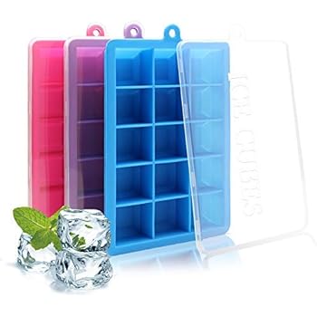4 Pezzi Stampo Cubetti Di Ghiaccio Con Coperchio, JRISBO Formine Cubi Ghiaccio Silicone 100