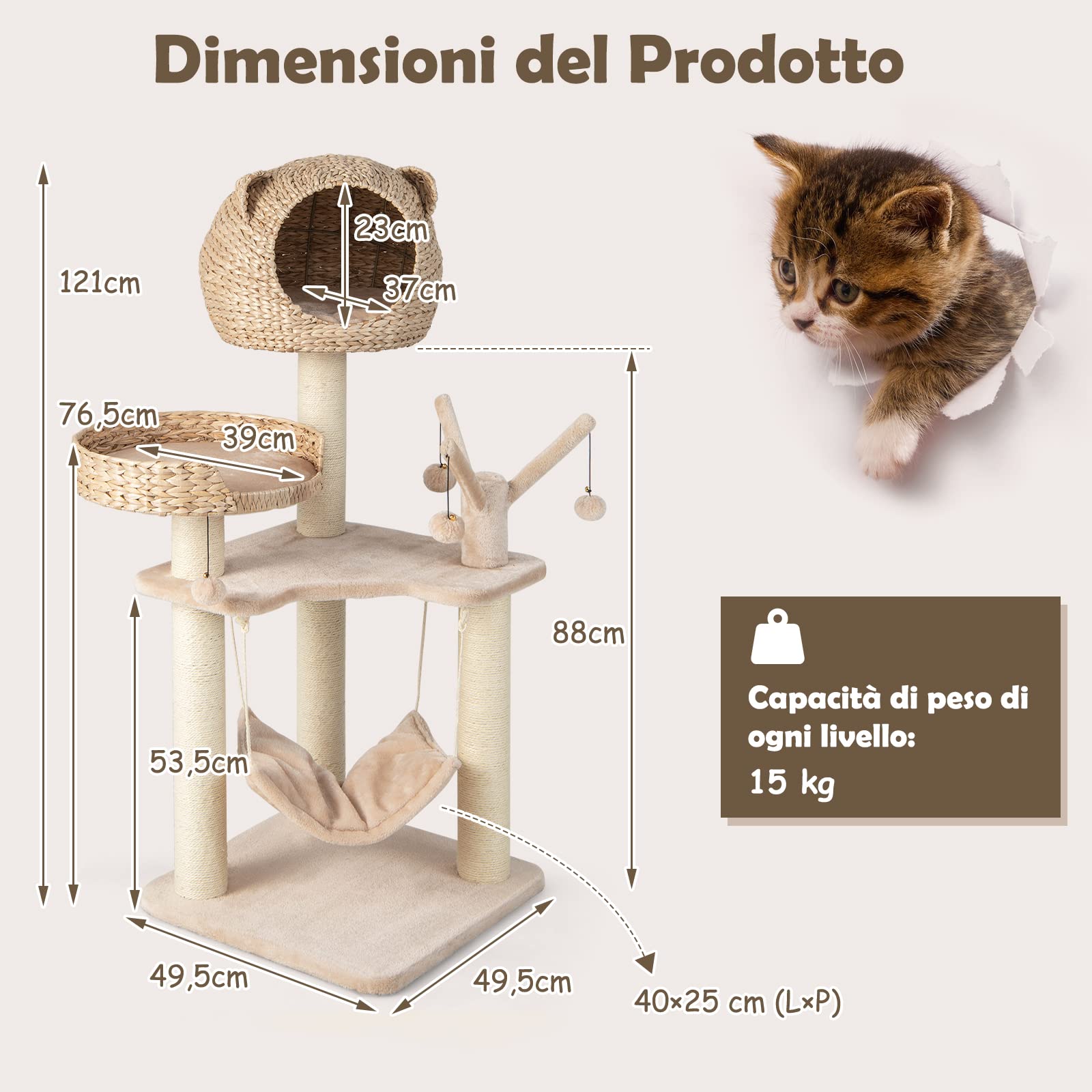 In questo modo, i gatti possono saltare su e già facilmente e in sicurezza. Il PVC durevole è difficile da usare e deformare e garantisce la durata prolungata dell’albero per gatti. IN STOCK: COSTWAY Tiragraffi per Gatti Adulti con Cuccia, Cassette per Gatti, Piattaforma, Cuscini e Tiragraffi, Albero Tiragraffi per Gatti Grandi Alto in Legno, 77,5x49x132 cm, PV10055CF-EU al miglior prezzo. Consegna rapida in tutta Italia 😸【Struttura Robusta e Stabile】Il nostro albero per gatti ha una struttura ultra resistente e il peso delle colonne e delle piattaforme è ben distribuito. 😽【Rivestimento in Tessuto Felpato e Colonne in Corde di Sisal】Gli artigli dei gatti sono morbidi e delicati. Se segui attentamente le istruzioni per ogni parte, lo monterai facilmente e velocemente. 😻【Nessun Montaggio Complicato】Si può vedere dall’aspetto semplice che il nostro albero per gatti non ha un montaggio complicato e tanti accessori. L’aspetto semplice e alla moda si adatta a diversi stili decorativi delle case ed è molto pratico. Inoltre, abbiamo creato una stanza spaziosa con cuscino in tessuto felpato che protegge la privacy degli animali e offre loro uno spazio sicuro per dormire. Per evitare che si facciano male a causa delle grandi differenze di altezza nei salti, abbiamo realizzato piattaforme a 6 livelli con intervalli uniformi. Tiragraffi Per Gatti Adulti COSTWAY , Tiragraffi Per Gatti Con Cuccia, Piattaforma, Cuscini E Tiragraffi Albero Tiragraffi Per Gatti Grandi Alto In Legno 775 X 49 X 132 Cm 79420741 Ruota Per Gatti