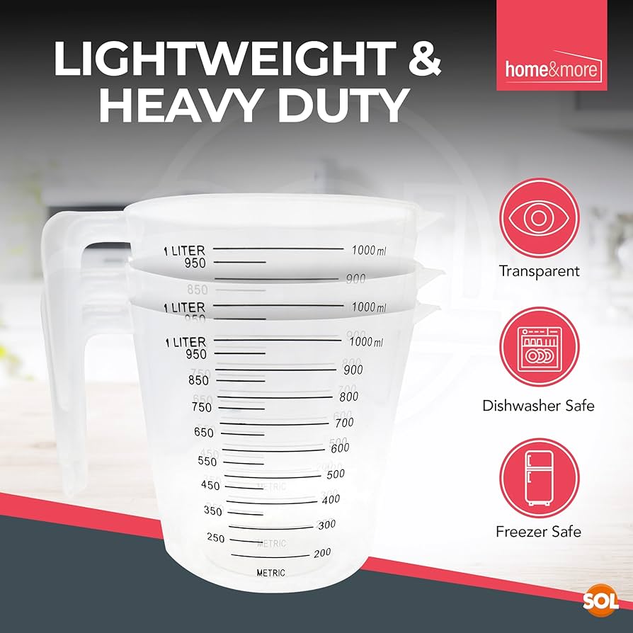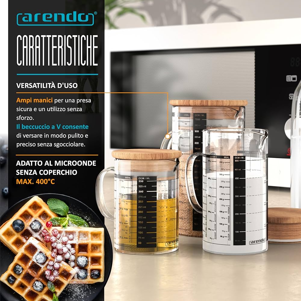 Il sale è facile da misurare come lo zucchero, la farina o i fiocchi d'avena. Dai millilitri/litri alle once fluide e alle tazze (EU), il set offre un'ampia gamma di unità di misura per aiutarvi a realizzare le vostre ricette con precisione. Bicchiere Per Frullatore Ad Immersione Arendo Caraffa Graduata In Vetro 500ml 0,5L, Bicchiere Graduata Trasparente Da Cucina, Caraffa In Vetro Borosilicato, Guarnizione In Silicone, Caraffa Da Cucina : Amazon.it: Casa E Cucina Brocca Graduata SET DI MISURATORI IN VETRO BOROSILICATO DI ALTA QUALITÀ: vi offre la massima qualità con una varietà di pratiche unità di misura! | I manici larghi assicurano una buona presa e facilitano il versamento degli ingredienti. DIMENSIONI: 250 ml: altezza: 7,2 cm, lunghezza: 14 cm, larghezza: 10,5 cm; peso: 299 g | 500 ml: altezza: 9 cm, lunghezza: 17,5 cm, larghezza: 13 cm; peso: 605 g | 1000 ml: altezza: 11 cm, lunghezza: 20,5 cm, larghezza: 15,8 cm; peso: 938 g SET CARAFFE GRADUATE in Vetro 250Ml , 500Ml , 1000Ml ( 0,2L 0,5L 1L ) Brocca Graduat - EUR 46,86. IN VENDITA! Prodotto Set con 3 caraffe dosatrici in vetro . Realizzato in vetro borosilicato 176801030095 Sia che stiate mescolando spezie o misurando un litro di liquido, questo set vi assicura di avere sempre il contenitore giusto. I manici larghi assicurano una buona presa e facilitano il versamento degli ingredienti. Uno strumento versatile per la preparazione e la cottura dei cibi!