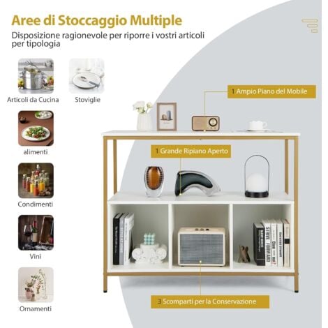 I piedini regolabili aiutano anche a mantenerlo stabile su superfici irregolari. 【Progettato in Modo Pratico】Le 2 ante proteggono la tua privacy e impediscono all'aria esterna di entrare. Massimizza il tuo spazio di archiviazione con il nostro mobile buffet laterale! Questo mobile per bar del caffè ha un design spazioso con un piano ampio, 3 comparti aperti e 3 armadietti con ante , offrendo ampio spazio di archiviazione per gli articoli e Credenza Alta Cucina COSTWAY Credenza Industriale Per Buffet, Mobile Da Cucina Con Portabottiglie, Ripiano In Rete Metallica, 2 Ante, Per Sala Da Pranzo, Soggiorno, 120 X 40 X 85 Cm : Amazon.it: Casa E Cucina Mobile Credenza Cucina Inoltre, il nostro mobile da cucina con bellissime venature di legno combina un aspetto elegante e una grande praticità. D'altra parte, la credenza può resistere all'usura quotidiana e ai graffi. 【Costruzione Solida e Stabile】La credenza è realizzata in materiali di alta qualità, garantendo una lunga durata. 【Facile da Assemblare e Mantenere】Grazie alla sua struttura semplice e a agli accessori completi, puoi completare il montaggio facilmente seguendo i passi descritti nel manuale utente. 【Spazio Classificato per la Conservazione】Il nostro armadietto autoportante presenta un piano spazioso, uno scomparto aperto, un portabottiglie da 8 posti e 2 scomparti laterali con anta, mantenendo i tuoi oggetti ben organizzati e soddisfacendo le tue esigenze di esposizione.
