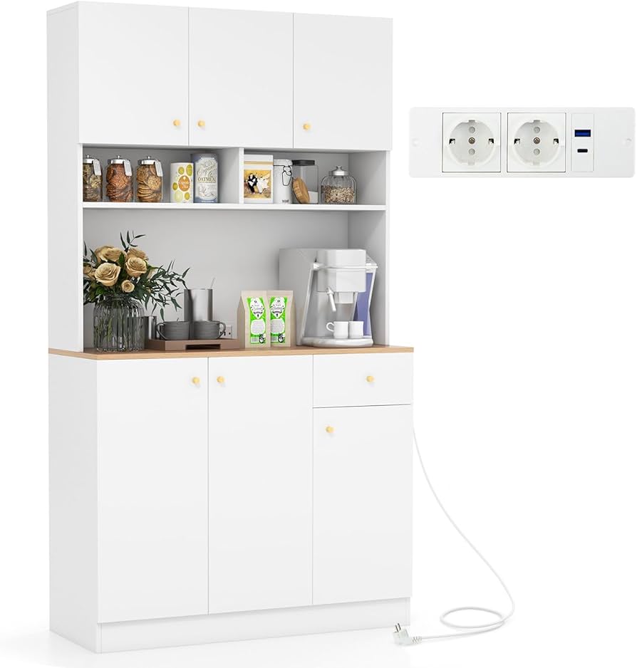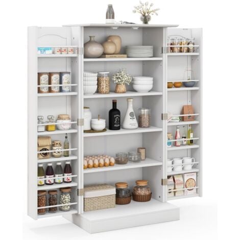 COSTWAY Credenza Da Cucina, Mobile Da Cucina Moderno Con 6 Ripiani Regolabili, Per Cucina, Sala Da Pranzo E Soggiorno, 60 X 40 X 120 Cm (Bianco