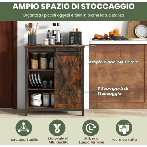 Grazie al dispositivo antiribaltamento, il mobile ha meno probabilità di oscillare, garantendo una buona stabilità e sicurezza. Inoltre, gli scomparti sono progettati con barre di metallo per evitare la caduta degli oggetti. COSTWAY Credenza Cucina, Mobile da Ingresso con Ante Scorrevole, Armadietto con Ripiani Regolabili, Mobiletto Multiuso,3 Ripiani e 1 Scomparto con Porta per Cucina, Sala da Pranzo, 70 cm x 30 cm Amazon Credenza Da Cucina COSTWAY Credenza Da Cucina, Mobile Da Cucina Moderno Con 6 Ripiani Regolabili, Per Cucina, Sala Da Pranzo E Soggiorno, 60 X 40 X 120 Cm (Bianco Mobile Sala Moderno 【Ampia gamma di applicazioni】Questo mobile dispensa combina finitura bianca e linee eleganti in un'unica soluzione moderna e alla moda per la tua casa. Inoltre, la superficie del mobile è impermeabile e facile da pulire. Inoltre, i ripiani regolabili su 3 posizioni offrono uno spazio personalizzato per oggetti di diverse dimensioni. Può essere ampiamente utilizzato in cucina, sala da pranzo, soggiorno. 【Ampio spazio di archiviazione】Questo mobile da cucina è dotato di 5 ampi scomparti centrali e 12 scomparti laterali, che ti consentono di riporre un gran numero di oggetti.