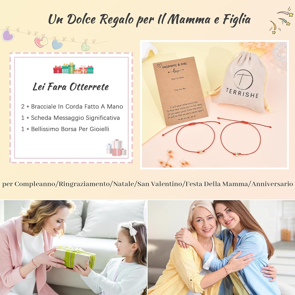 Bracciale Mamma E Figlia REQAG Bracciale Madre E Figlia Promessa Corrispondenza Braccialetti In Acciaio Inossidabile Con Cuore Fatto A Mano A Lunga Distanza Regalo Per Donne Ragazze Mamma Famiglia : Amazon.it: Moda Bracciale Bambina ❣️【Regalo Per Il Ritorno a Scuola】Indossa un braccialetto per il rientro a scuola per incoraggiare tuo figlio/figlia ad andare avanti e varcare la soglia della scuola. ❣️【Regali per Il Primo Giorno di Scuola】Quando arriva il primo giorno di scuola, tua figlia/figlo potrebbe sentirsi nervosa o ansiosa. ❣️【Misura Regolabile】Il braccialetti mamma e figlia con regolabile misura da 16 cm a 32 cm, con un nodo antiscivolo, può essere regolato facilmente per adattarsi alle dimensioni del polso, garantendo una perfetta aderenza del bracciali per 2, rendono voi e la vostra figlia/figlio comodi da indossare tutti i giorni. ❣️【Set Incluso】L'adorabile set di braccialetti regalo per il ritorno a scuola set include 2 braccialetti dell'amore, un dolce biglietto di auguri e una squisita borsa regalo. ❣️【Materiali di Alta Qualità】Il braccialetti regalo per il ritorno a scuola presenta un forma di cuore, è realizzato in acciaio inossidabile e corda intrecciata, non sbiadisce facilmente, non arrugginisce. indossate questi braccialetti del primo giorno di scuola e dille che non ha bisogno di avere paura, che il cuore di sua madre sarà sempre con lei.