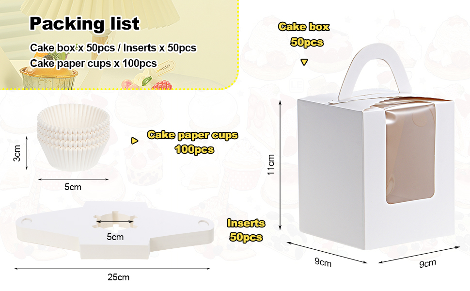 Perfetto per aggiungere valore di imballaggio a piccoli successi e torte. Ottimo come opzione da asporto per panetterie, pasticcerie o caffè, ecc. 🍰【Scatole per torte robuste in materiale cartaceo alimentare】Realizzate in carta alimentare robusta da 350 gsm, abbastanza spessa da impedire la deformazione. TsunNee 50PCS Scatole per Cupcake Singole con Fodere per Cupcake , Scatole per Cupcake Singole, Scatole di Carta per Panificio Scatole per Compleanno Matrimonio Baby Shower Bomboniere per feste 🍰【Finestra di visualizzazione chiara e comoda maniglia】La parte superiore della scatola per cupcake è dotata di una finestra di visualizzazione, che consente di visualizzare in modo ottimale le torte e le prelibatezze all'interno senza esporle all'aria. 🍰【Set di scatole per cupcake individuali, inserti per cupcake e rivestimenti per cupcake】Viene fornito con 50 pezzi di scatole per cupcake, 50 pezzi di inserti rimovibili e 100 pezzi di fodere per cupcake per rendere i vostri cupcake o muffin fissi nelle scatole durante il trasporto. Scatolina Portaconfetti TsunNee 50PCS Scatole Per Cupcake Singole Con Fodere Per Cupcake, Scatole Per Cupcake Singole, Scatole Per Panificio Di Carta Per Bomboniere Di Scatole Per Cupcake Grandi Quando non lo si usa, basta disimballarlo e appiattirlo per riporlo facilmente. 🍰【Scatole pratiche di dimensioni perfette】Dimensioni assemblate 9 x 9 x 11 cm (L x W x H), grande altezza che ha permesso a un cupcake con un topper alto di adattarsi in modo sicuro e protetto, proprio la cosa per trasportare torte, muffin o cupcake ecc. E se non avete bisogno dell'inserto, basta estrarlo per usi multipli, come biscotti, caramelle o scatole regalo artigianali fai da te ecc. facile da usare e risparmio di tempo. 🍰【Facile da assemblare e conservare】Design pre-assemblato, basta piegarlo rapidamente in base alla piega seguendo i passaggi mostrati nell'immagine, senza bisogno di colla.