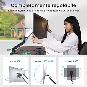 Con schermi curvi da 49 è difficile fissare l'inclinazione, ma si prega di utilizzare un po 'di forza muscolare. Se lo schermo si inclina sempre verso il basso e non può essere fissato, si prega di stringere la vite sul braccio più vicino allo schermo. Braccio Monitor Scrivania Supporto Per Monitor Piatto E Curvo Da 17 - 49 Pollici, Robusto Monitor 34 Supporta monitor più grandi: il robusto braccio per monitor da gioco PUTORSEN presenta un robusto angolo di inclinazione che supporta schermi extra larghi da 17 a 49 pollici con un peso da 2 kg a 20 kg e supporta VESA 75 mm x 75 mm/100 mm x 100 mm. Ergonomico regolabile in altezza: può regolare fino a 55,7 cm di estensione del braccio e 50 cm di altezza, in modo da poter cambiare liberamente la postura seduta e ridurre la compressione spinale mentre si passa da seduti a in piedi in qualsiasi momento. Garanzia: a vita e 24 ore di follow-up. Le migliori offerte per Supporto per Monitor Piatto E Curvo Da 17 – 49 Pollici, Robusto Supporto per Mon sono su Confronta prezzi e caratteristiche di prodotti nuovi e usati Molti articoli con consegna gratis * Nota: non adatto per schermi di peso inferiore a 2 kg. *Si prega di regolare la tensione della molla a gas in base al peso del monitor prima dell'uso. La piastra VESA rimovibile consente una facile installazione.