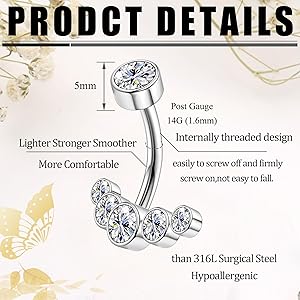 Non è facile da staccare ed è comodo e sicuro da indossare. [Lista di imballaggio] Riceverete 12 pezzi di piercing per ombelico, dodici colori diversi per soddisfare le vostre esigenze quotidiane, aggiungere più freschezza al vostro look quotidiano 💎 【Ottimo regalo】: questo bottone per ombelico è un ottimo regalo per i compagni di classe, ritorno a scuola o regalo di laurea per amici, festa di compleanno, festa della mamma, damigella d'onore, souvenir di nozze. 💎【Zirconi cubici pregiati】: i piercing all'ombelico sono decorati con zirconi cubici pregiati per un look classico e sofisticato. 💎【Acciaio inossidabile di alta qualità】: realizzato in acciaio inossidabile di alta qualità, anallergico, resistente allo sbiadimento, non corrosivo, antiruggine, garantisce una qualità affidabile. L'anello per ombelico extra corto in cristallo è adatto per piercing piatti e piccoli. Piercing Ombelico Titanio Piercing Ombelico Acciaio Piercing Al Sopracciglio 6/8/10mm Curvo In Acciaio Con Palline Punk Rock Unisex Piercing Lingua Acciaio Chirurgico Pearcing Ombelico Anallergico La superficie è liscia, lucida e comoda da indossare.