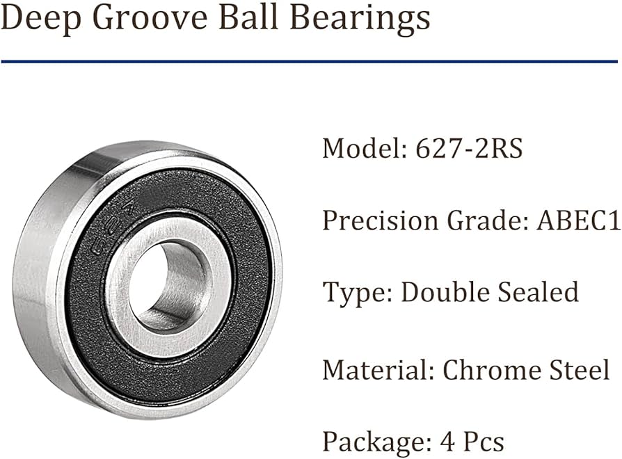 PATIKIL 627ZZ 7x22x7mm Profonda Scanalatura Sfera Cuscinetto, 2pz Doppio Schermato Cromo Acciaio Cuscinetti