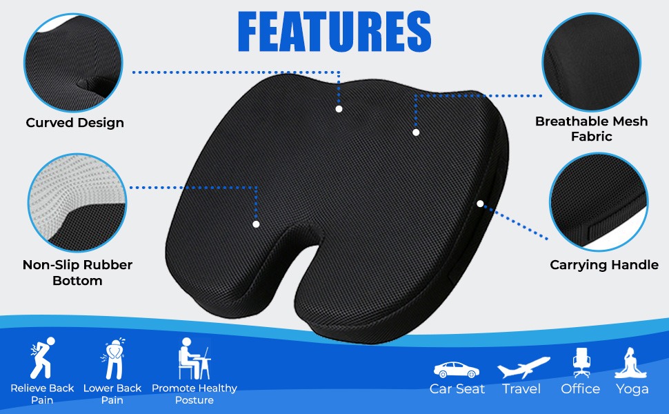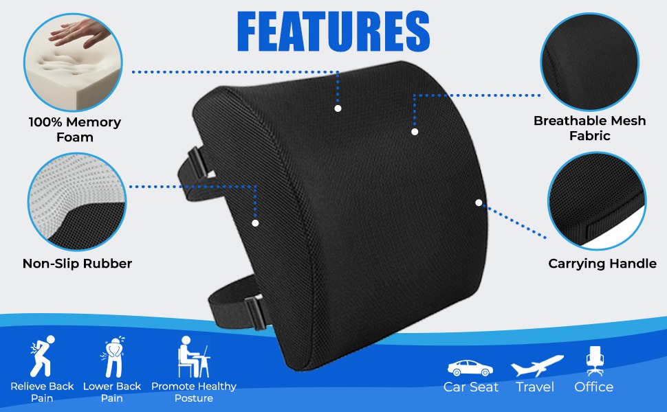 Sedia Per Scrivania Cuscino Lombare Per Auto Lifestyle Comfort Ltd LSC - Cuscino Lombare E Sedia Da Ufficio, In Memory Foam, Ergonomico, Per Schienale E Coccige, Traspirante, Rimovibile, In Rete, Per Scrivania, Seggiolino Auto, Viaggi Cuscino Sedia Ufficio Descrizione prodotto È comune che i prodotti in memory foam si sentano inizialmente un po 'solidi, ma il materiale è progettato per rispondere al calore corporeo e adattarsi gradualmente alla forma del corpo dell'utente. Questo processo consente un'esperienza più personalizzata e confortevole nel tempo. [Supporto ortopedico perfetto] I nostri cuscini di supporto per la schiena e il sedile si adatteranno ai contorni del corpo, rendendoli ottimi cuscini di supporto durante la guida o il lavoro per lunghe ore. Il cuscino per la sedia da ufficio è il massimo sollievo per il dolore al coccige/coccige. [Adatto a qualsiasi sedia] Rendi ergonomica qualsiasi sedia o seduta con i nostri cuscini portatili e leggeri per schienale e seduta per funzionare perfettamente come cuscino per sedia da scrivania, cuscino di supporto per sedile auto, cuscino per sedia da gioco, cuscino per sedia a rotelle e anche per viaggi Se inizialmente il cuscino è troppo rigido, dargli un po' di tempo e utilizzo dovrebbe portare a un maggiore livello di comfort poiché il memory foam si adatta al peso corporeo e ai contorni.