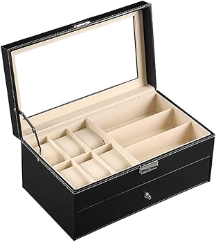 orologi porta colore scatola pelle Adatto per riporre orologi, gioielli, gemelli, maglie di ricambio, anelli, orecchini, bracciali e collane Perfetto per uso domestico e aziendale, e una meravigliosa idea regalo Porta Occhiali Autoark Scatola Porta Orologi Custodia Per 12 Orologi E Gioielli,in Cofanetti Porta Orologi La parte superiore in vetro trasparente offre una vista aperta e puoi trovare il tuo tesoro preferito in pochi secondi con questo orologio e portagioie unici. Chiusura in metallo, superficie in pelle PU marrone di alta qualità, interni in velluto e cuscini, due livelli, il primo livello include 12 cuscini in velluto rimovibili, il secondo livello è un vassoio per gioielli