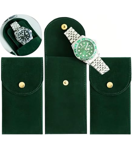 Si chiude a scatto e non ci sono parti metalliche esposte all'interno della custodia per mantenere al sicuro i vostri orologi, orologi da tasca e smartwatch. Adatto per borse regalo, borse portagioie, bomboniere, festival e occasioni di festa. MATERIALE DUREVOLE DI ALTA QUALITÀ: porta orologi La custodia è realizzata con uno strato di perle di alta qualità. EUPSIIU 5 Pezzi Custodia per Orologio da Viaggio Portatile Orologio Sacchetto, Stoccaggio Orologio Borsa con Bottone A Pressione custodia resistente per Gioielli per viaggi all'aperto (Verde Scuro Progettato per riporre gli orologi, può essere utilizzato anche per conservare collane, bracciali, cavigliere e altri gioielli. porta orologi da viaggio Cuscinetto per orologio incorporato per proteggere l'orologio. Porta Orologi Da Viaggio LOMSUXA 3 Pezzi Custodia Per Orologio Da Viaggio Portatile Porta Orologi Uomo TASCA PERPETUA PER OROLOGIO IN VELLUTO: 3 PEZZI verde scuro o intenso porta orologi, porta orologi Regalo di compleanno ideale per la famiglia, gli amici e gli innamorati. Lo adoreranno sicuramente. Non solo li protegge dai graffi, ma li rende anche più eleganti. Proteggono l'orologio da polvere e sporco. Le tasche per orologi con bottoni a pressione sono caratterizzate da bottoni a pressione dal design raffinato che impediscono all'orologio di cadere. Design con chiusura a scatto:porta orologi da viaggio I bordi della custodia sono cuciti meccanicamente e l'estremità superiore è progettata con una chiusura a scatto, che rende l'effetto di fissaggio più affidabile e impedisce la perdita degli oggetti.