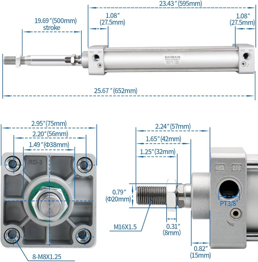 Heschen Pneumatic Standard Air Cylinder, SC 63-500, PT3/8 Port, 63mm