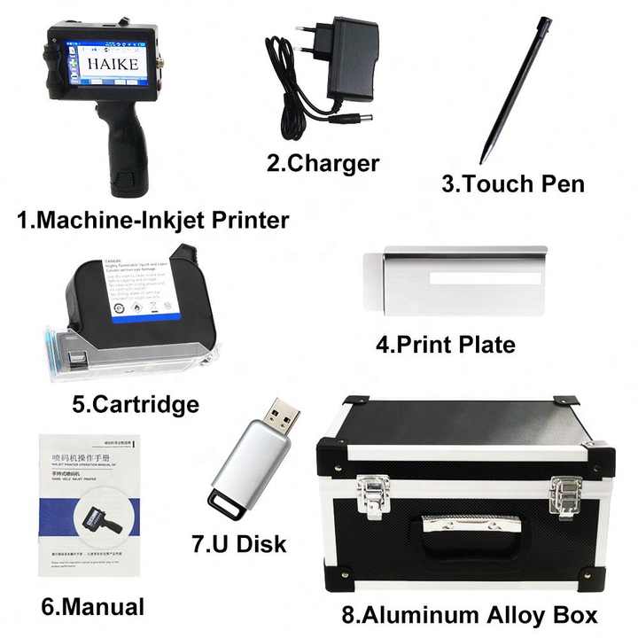 CARTUCCIA D'INCHIOSTRO AD ASCIUGATURA RAPIDA] Questa stampante portatile viene fornita con una cartuccia d'inchiostro nero ad asciugatura rapida da 42 ml, la stampa è estremamente chiara, cartuccia d'inchiostro impermeabile Risolveremo i tuoi problemi entro 24 ore. Visualizzazione chiara delle immagini, prestazioni di stampa stabili e affidabili. 【SCHERMO SENSIBILE DA 4,3 POLLICI】 La pistola per stampante a getto d'inchiostro portatile è dotata di touch screen LED HD da 4,3 pollici, alta sensibilità e alta risoluzione, design semplice dell'interfaccia utente, per offrirti un'esperienza di utilizzo simile a quella di un telefono cellulare. 【POST-VENDITA】Se hai altre domande su questo prodotto, contattaci in qualsiasi momento. Stampante Per Portatile Termica Smart Tij Digale Online Macchina Di Codifica A Getto D'inchiostro Stampante Di Codice Data Di Scadenza Per Bottiglia/borsa Di Plastica Stampante A Getto D'inchiostro 【AMPIA APPLICAZIONE】 La pistola per stampante portatile portatile può soddisfare le esigenze di vari lavori di stampa, come testo, numeri, simboli, numero di serie, codici QR, codici a barre, immagini, ora, etichetta, data, loghi fai-da-te, tag, data di scadenza, che può essere stampato su una varietà di materiali tra cui legno, cartone, pietra, pannelli di fibra a media densità, acciaio, carta, ecc.