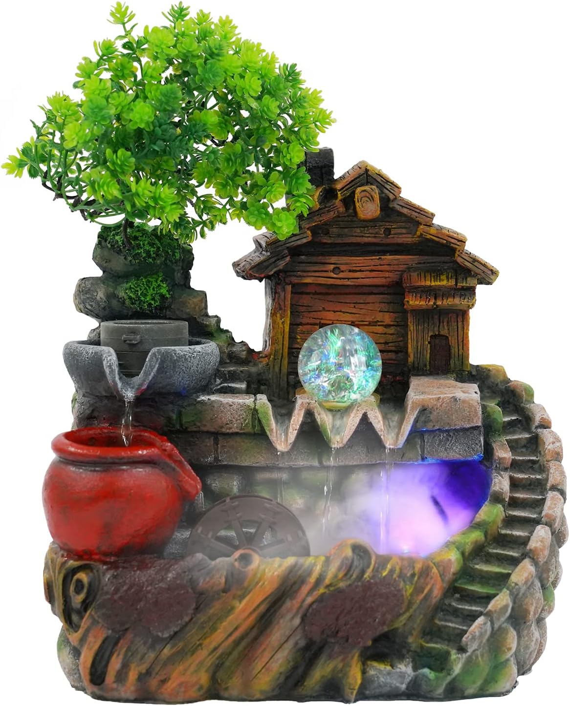 Atmosfera Maker: la sera puoi goderti la luce a LED che può cambiare i colori e illuminare la cascata per creare un'atmosfera da sogno per te Aiuto per il Il suono dell'acqua corrente prima di andare a letto può allontanare la stanchezza della giornata e aiutare a dormire tranquillamente Descrizione. [LUCI LED SPARLANTI] Godi le nostre luci fontane a LED con acqua la sera sul patio del tuo giardino o sul tavolo della camera da letto Fontana Da Giardino FONTANA A CASCATA FONTANA DA INTERNI FONTANA DA Fontane Per Interni Compatto e leggero: le dimensioni compatte (7.09*5.91*11.81in) e il peso leggero (3.09lbs) rendono il prodotto facilmente spostato e posizionato Il bell'aspetto può aggiungere colore a qualsiasi tavolo, soggiorno, camera da letto o arredamento della scrivania Sicuramente un ottimo regalo per tutte le occasioni (Natale, compleanni, San Valentino, festa della mamma, festa del papà) o semplicemente per divertirsi! Bella decorazione da tavola: le piante simulate, la ruota dell'acqua e le rocce con texture chiare ti faranno sentire in natura. Descrizione prodotto Ruota idraulica