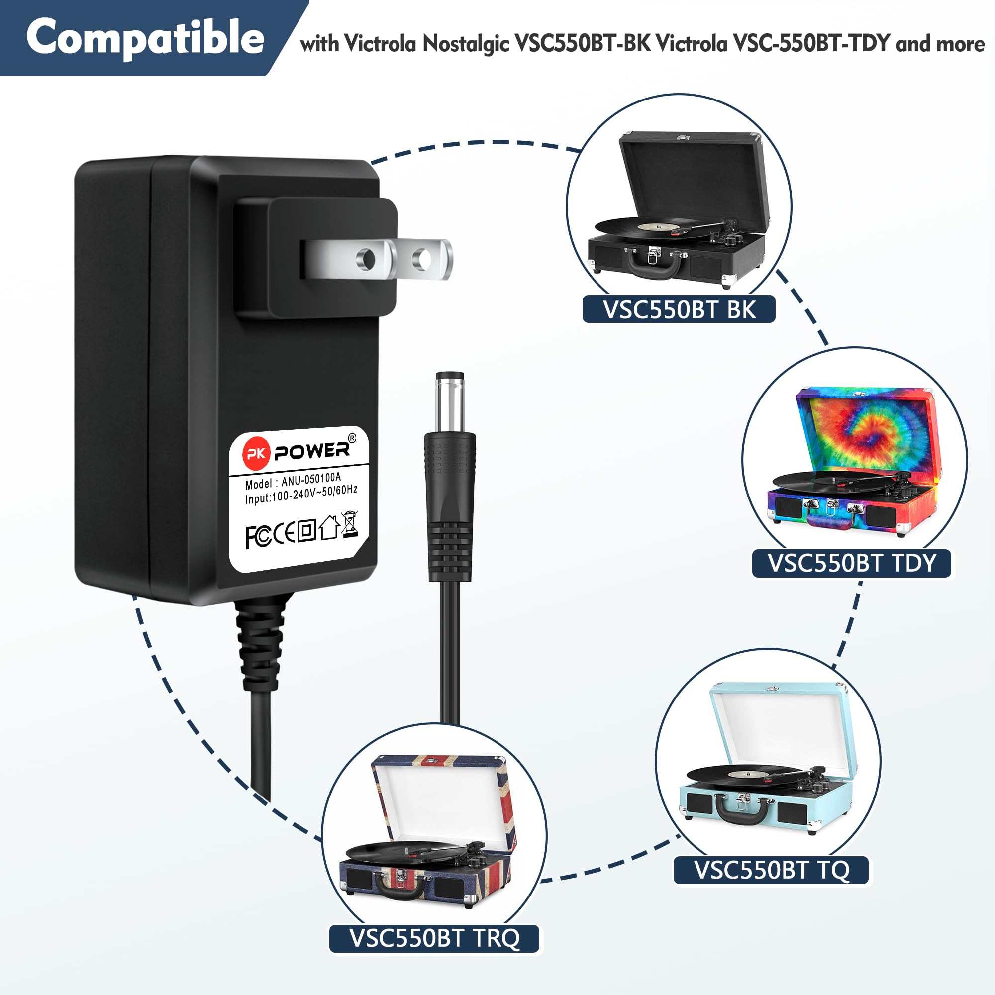 DC 5V 1A 2A Charger For Victrola Record Player Power Cord, For Vinyl Suitcase Turntable Player VSC-550BT VSC-550BT-BK Vintage 3-Speed AC
