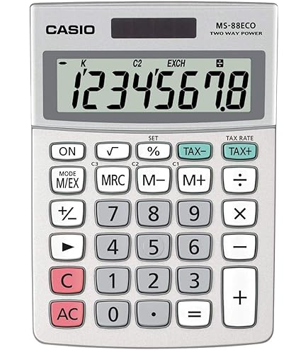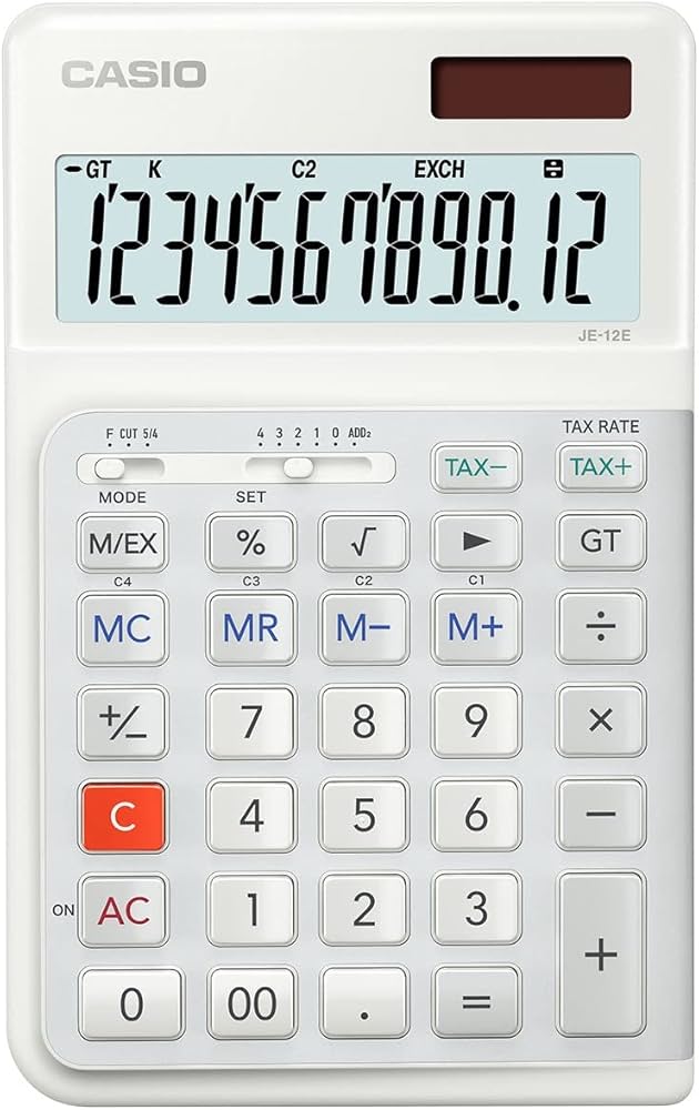 Calcolatrice Da Tavolo Per Ufficio Casio DE-12E - Calcolatrice Da Tavolo Ergonomica A 12 Cifre Casio Tasti Ergonomici Funzione per calcolare facilmente imposte e riduzioni. Scopri il prodotto CASIO DE-12E-WE ed esplora la categoria Calcolatrici con prezzi e offerte online su Un'aliquota fiscale salvata in precedenza può essere aggiunta o sottratta da un importo premendo un pulsante I dispositivi sono alimentati a energia solare e, se necessario, sono supportati dal funzionamento a batteria. Se la calcolatrice non viene utilizzata per 6 minuti, si spegne automaticamente Questo è vantaggioso quando si viaggia Dopo aver inserito e salvato fino a tre tassi di cambio, gli importi possono essere facilmente convertiti nelle valute appropriate.