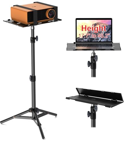 DECOSIS Treppiede Per Proiettore Da 59,7 Cm A 118,1 Cm, Supporto Per Laptop Regolabile In Altezza Con Supporto Per Telefono A Collo D'oca, Supporto Da Pavimento Per Laptop, Per Ufficio, Casa, Palco