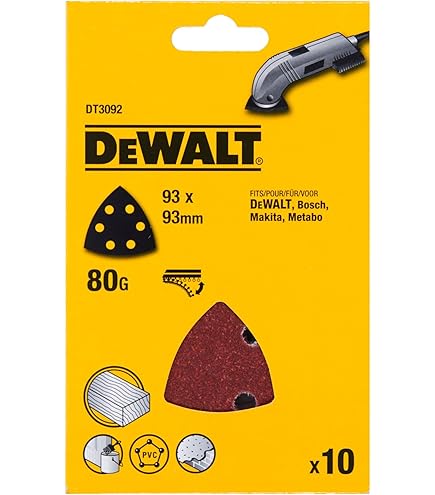 DEWALT Carta Abrasiva Triangolare Grana 60 - Confezione Da 10 Fogli Dt3091 Qz 85024521