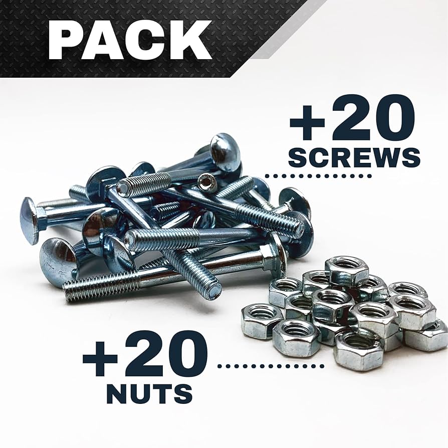 DOJA Industrial | Viti Con Testa Tonda E Dado Quadrato | 8 X 40 Mm | 20 Pezzi | Set Bulloni Carrello Con Collo Quadrato | Bulloni E Dadi Per Molteplici Usi