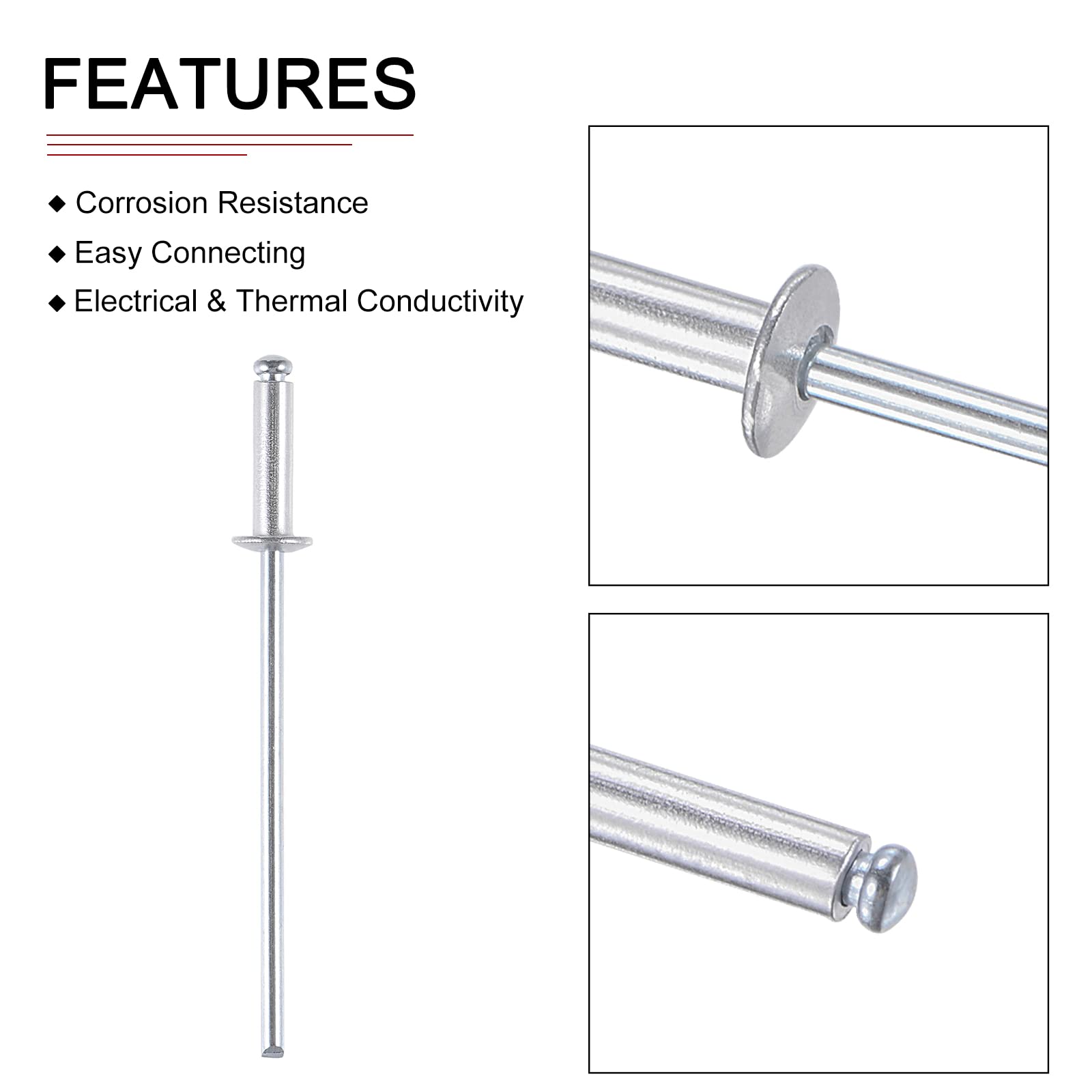 Se il componente è accessibile solo da un lato, un giunto rivettato deve essere il metodo migliore da scegliere. [Caratteristiche]: Componente di connessione facile rispetto alle viti. DTGN 2.4mm x 9mm (DxL) Blind Rivets - 60 Pack - Good for Machine Connections - Aluminium Dome Rivets DTGN 4mm X 2meters(DXL) Foam Rubber Weather Seal Strip - 1Pack - Good For DIY Furniture - Round [Installazione]: Per utilizzare un rivetto cieco, viene prima praticato un foro attraverso le parti da unire. Il mandrino si staccherà al punto di rottura prestabilito, una volta terminata la deformazione. Collega due pezzi di materiale in modo rapido ed efficiente con una rivettatrice manuale o uno strumento pneumatico per rivetti. Il rivetto cieco viene inserito attraverso il foro e viene impostato con un utensile di rivettatura (meccanico o pneumatico); impostando e afferrando il mandrino con l'utensile e tirando all'indietro, il corpo del rivetto si deforma per espandersi e afferrare le parti da unire. [Rivetti ciechi]: La confezione viene fornita con 120 pezzi di rivetti ciechi aperti di colore argento con diametro del rivetto di 2,4mm/0,094, lunghezza della presa di 9mm/0,35, dimensioni della flangia di 4,8mm x 1mm/0,19 x 0,04 (Dia*T).