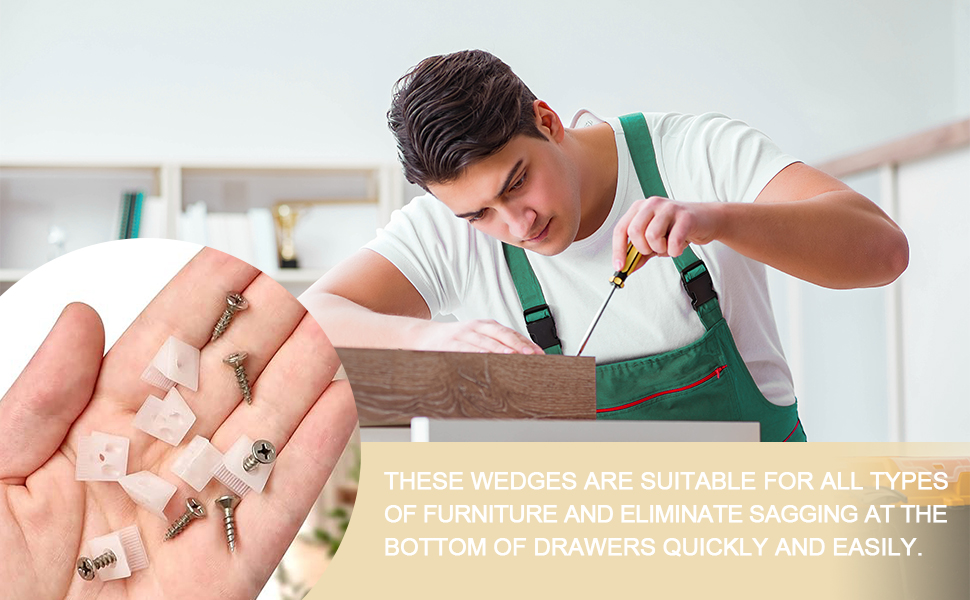 DXLing 100 Pezzi Cunei Di Fissaggio Stabilizzatori Con Viti Backplane Mend Cunei Mobili Cassetto Casa Mobili Cassetto Inferiore Riparazione Cedimenti Con Cunei Riparazione Per Cassetti Allentati