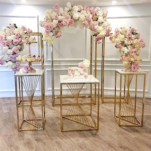 YALLOVE Supporto Rotondo Per Sfondi A Cerchio Da 1,5 M, Cornice Staccabile A 4 Ripiani In Metallo Dorato Per Sfondo Per Decorazione Per Corridoio, Display Da Palco E Molto Altro, Fiore Non