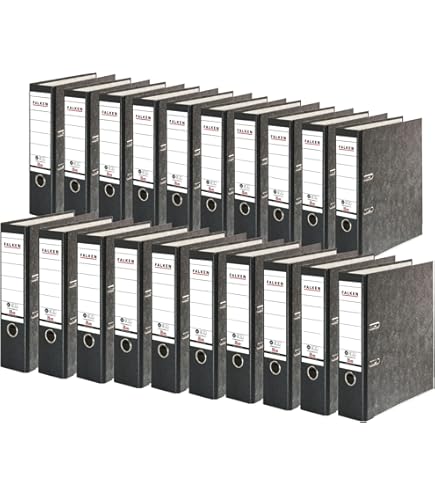 Divisori Per Raccoglitori Ad Anelli A4 Falken, Confezione Da 10 Raccoglitori In Materiale Riciclato Con Raccoglitore Ad Anelli Confezione da 10 pezzi, formato: per DIN A4. Capacità: circa 600 fogli (80 g / m²). Certificato FSC, Angelo Blu, ecologico. Compra Falken - Confezione da 10 raccoglitori riciclati a forma di marmo di nuvola, 8 cm di larghezza, formato DIN A4, dorso rosso, colore Lunghezza x larghezza x altezza: 28,5 x 8 x 31,8 cm (per cartellina).