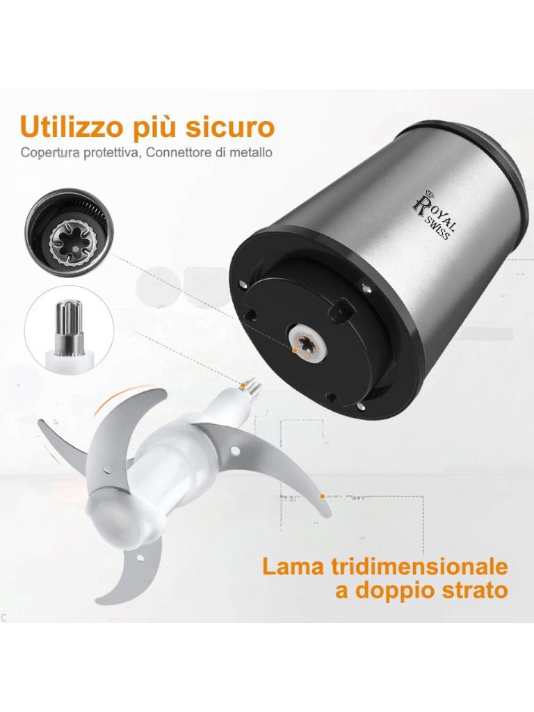 Tritatutto elettrico , tritacarne con 5 l ciotola in acciaio inox, tritacarne elettrico 500 W con 5 livelli di velocità e 6 lame , frullatore per verdure tritare carne (blu Facile da pulire: il mini tritatutto universale multifunzionale è rimovibile e gli accessori sono facili da pulire, le lame in acciaio inox e la ciotola possono essere lavate direttamente a mano, senza preoccuparsi di infiltrazioni d'acqua e danni alle parti del motore, e le robuste lame sono riutilizzabili. È un buon aiuto nella preparazione del cibo. Tritatutto elettrico 500 W, 5 l, tritacarne elettrico a 5 velocità e 6 lame in acciaio inox, mini tritatutto universale per carne, cipolle, frutta, verdura, alimenti per bambini L'elegante e bellissimo macinino si adatta perfettamente alla tua cucina e il design silenzioso non ti disturba durante la preparazione di cibi deliziosi. Frullatore Tritatutto Multifunzione Tritacarne In Acciaio Inossidabile Da 5 L/6 L, Tritatutto Elettrico Da 500 W, Comando A 5 Marce, 6 Lame Affilate, Coperchio Visivo, Per Carne, Frutta, Noci, Verdure,6L : Amazon.it: Casa E Cucina Tritatutto Da Cucina Elettrico Antiscivolo/silenzioso: il macinino elettrico multifunzionale è dotato di cuscinetti in gomma antiscivolo e anti vibrazioni e una maniglia per un facile utilizzo o rimozione.
