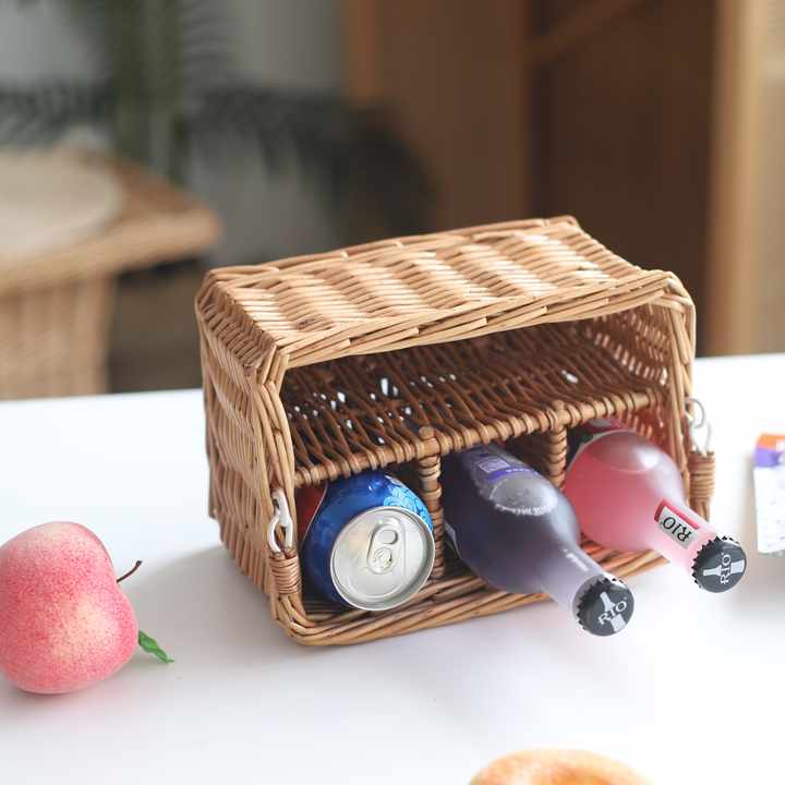 Portabottiglie Da 6 Bottiglie In Vimini Di Rattan Naturale Con