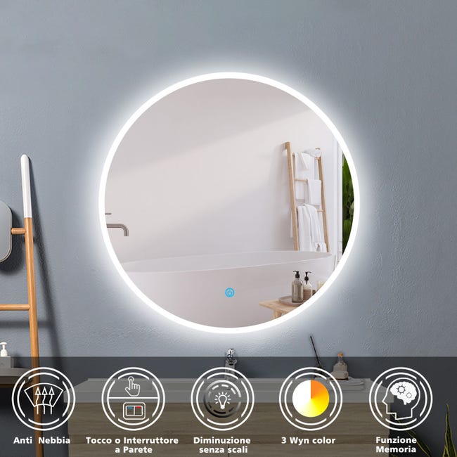 Luce morbida per proteggere gli occhi. Che si tratti di una temperatura ambiente inferiore o superiore, lo specchio LED può mostrare chiaramente la tua bellezza. Arredamento pratico e moderno: con una dimensione ottimale di 80 x 60 cm, lo specchio può adattarsi a diverse situazioni: in bagno, ma anche in corridoio, spogliatoio, soggiorno, ecc. Lo specchio da bagno non solo può illuminare la tua bellezza, ma funge Specchio Retroilluminato Bagno Baklon Specchio Da Bagno Rettangolare,Specchio Da Parete A LED 120x70cm Specchio Bagno Interruttore A Sfioramento Arredamento pratico e moderno: con una dimensione ottimale di 80 x 60 cm, lo specchio può adattarsi a diverse situazioni: in bagno, ma anche in corridoio, spogliatoio, soggiorno, ecc. Imballaggio e servizio clienti: la nostra priorità è che tu riceva lo specchio intatto, quindi abbiamo migliorato l'imballaggio dello specchio per garantire che non venga danneggiato durante il trasporto. 3 temperature di colore e dimmerabile: lo specchio da bagno con illuminazione ha 3 temperature di colore (3000 K luce calda/4000 K luce naturale/6500 K luce bianca fredda), crea il miglior aspetto sotto diverse luci. Lo specchio da bagno non solo può illuminare la tua bellezza, ma funge anche da bella decorazione nella stanza. Specchio anti-appannamento: quando la luce è accesa, la piastra riscaldante sul retro si riscalda allo stesso tempo per mantenere lo specchio senza appannamento.