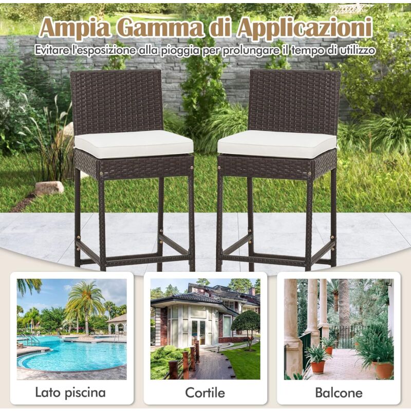 COSTWAY Set Di 2/4 Sgabelli Da Bar In Rattan, Sedia Da Bar Con Cuscino