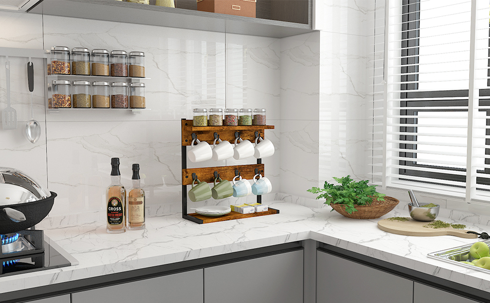 EASTAWIND Supporto Per Tazza Da Caffè In Legno Con 6 Ganci