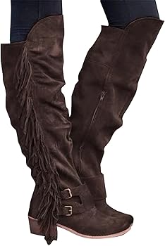 Stivali Sopra Il Ginocchio, Da Cowboy Con Frange, Stivali