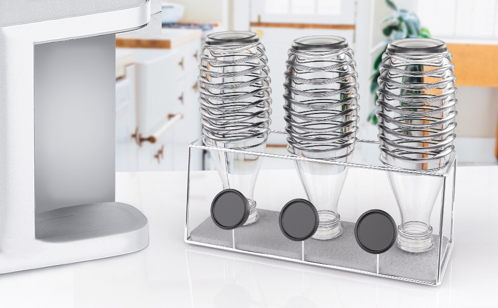 【Acciaio Inossidabile di Alta Qualità】 : Il supporto per lo scarico delle bottiglie di soda è realizzato in acciaio inossidabile per evitare la temuta ruggine. Il cuscinetto di diatomee assorbe l'acqua e la mantiene asciutta in 10 minuti. portabottiglie esigo acciaio Scovolino Per Bottiglie Scola Bottiglie Da Cucina Howdah Scolabottiglie Portabottiglie Da Cucina In Acciaio Inox Per 3 Bottiglie Di Soda E Tappi Di Bottiglia Con Diatomee Assorbenti Ad Asciugatura Rapida E Spazzola, Nero Bottiglie Scolatiche Sodastream Bottiglie Tutti i bordi del supporto di scarico sono lucidati e rifiniti per evitare di danneggiare voi, la vostra bottiglia e tutto il resto. 【Mantiene l'ordine】: Il cestello di sgocciolamento mantiene le bottiglie asciutte più velocemente e fornisce anche uno spazio extra per il lavandino per 3 bottiglie e 3 coperchi. La spazzola consente di pulire facilmente le macchie dalla bottiglia. 【Asciugatura aperta】: La verticale capovolta permette all'acqua rimasta nella bottiglia pulita di gocciolare rapidamente nel cuscinetto di diatomee, asciugando 10 volte più velocemente, utilizzando un metodo fisico che non richiede più l'uso di asciugatori aggiuntivi che consumano più elettricità. 【Prodotto e Specifiche】: Realizzato con 31 CM * 10,2 CM * 11,4 CM in acciaio inossidabile per scolapiatti per bottiglie di soda da cucina; 1 cuscinetto di diatomee; 1 spazzola per la pulizia delle bottiglie.
